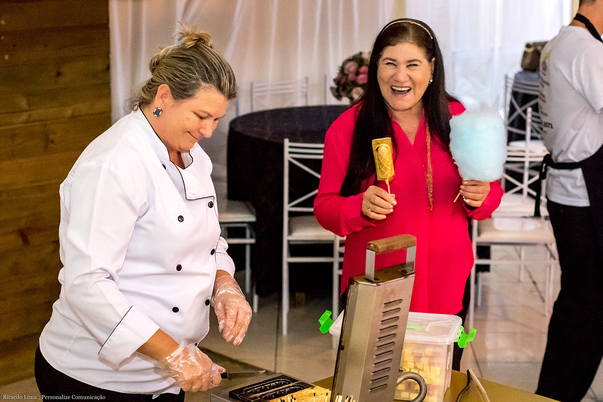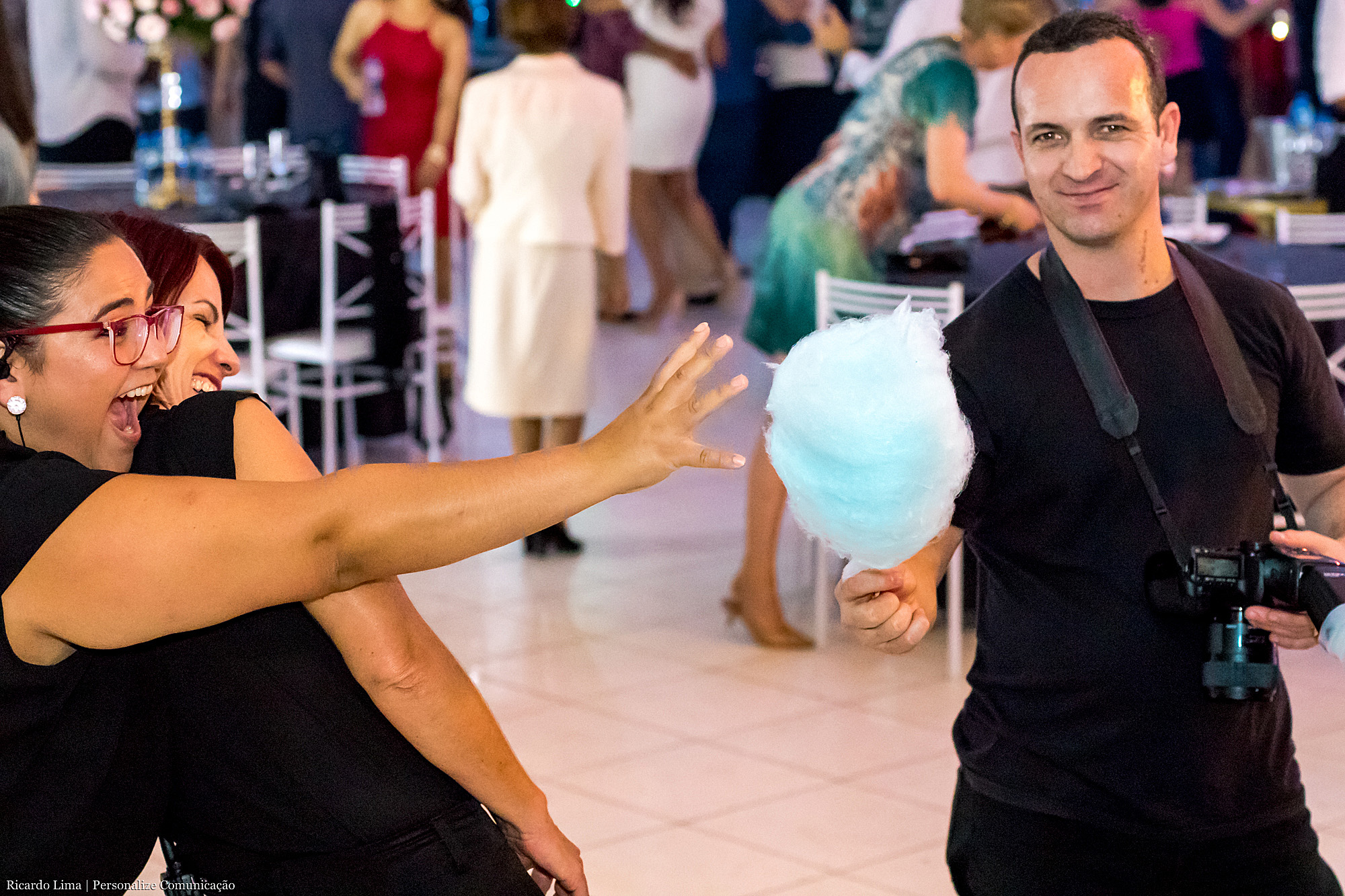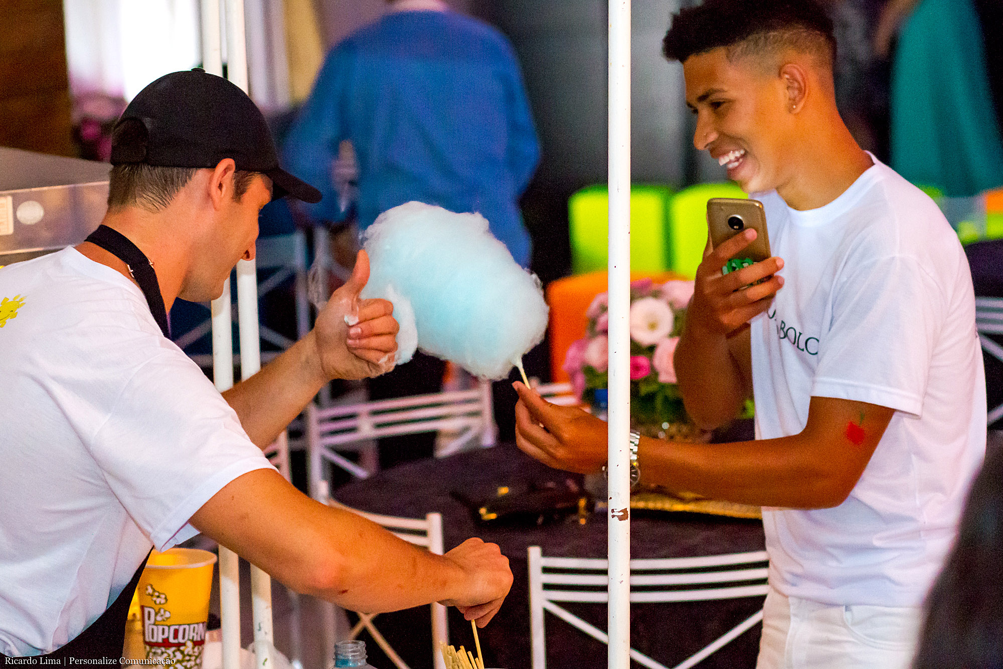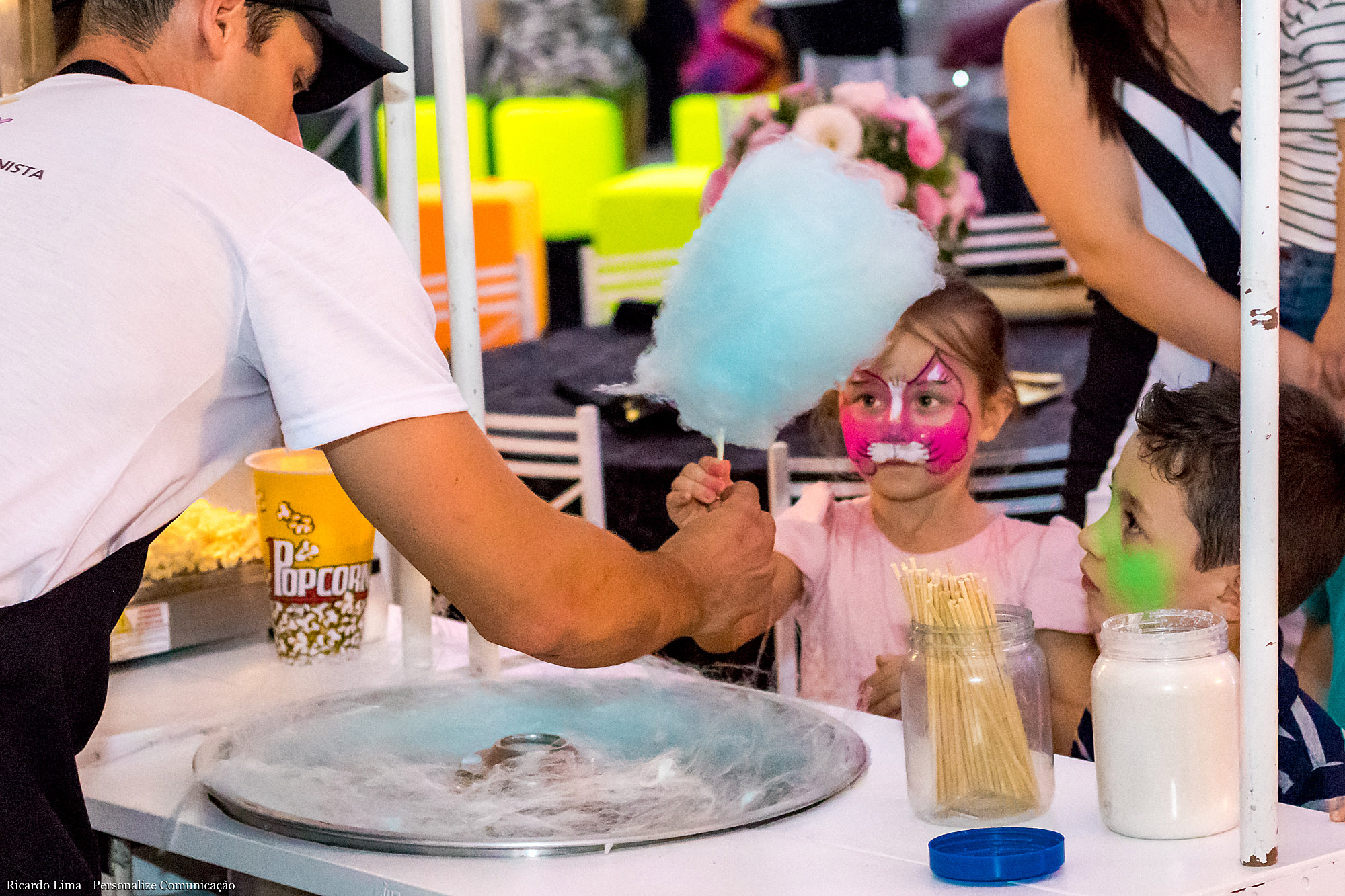 As barraquinhas de algodão doce e pipoca fizeram sucesso entre os convidados, principalmente entre as crianças. As guloseimas foram preparadas pela empresa Happy Day Floripa.  Os convidados puderam aproveitar essas delícias que são uma boa ideia de serem consumidas em qualquer época do ano.