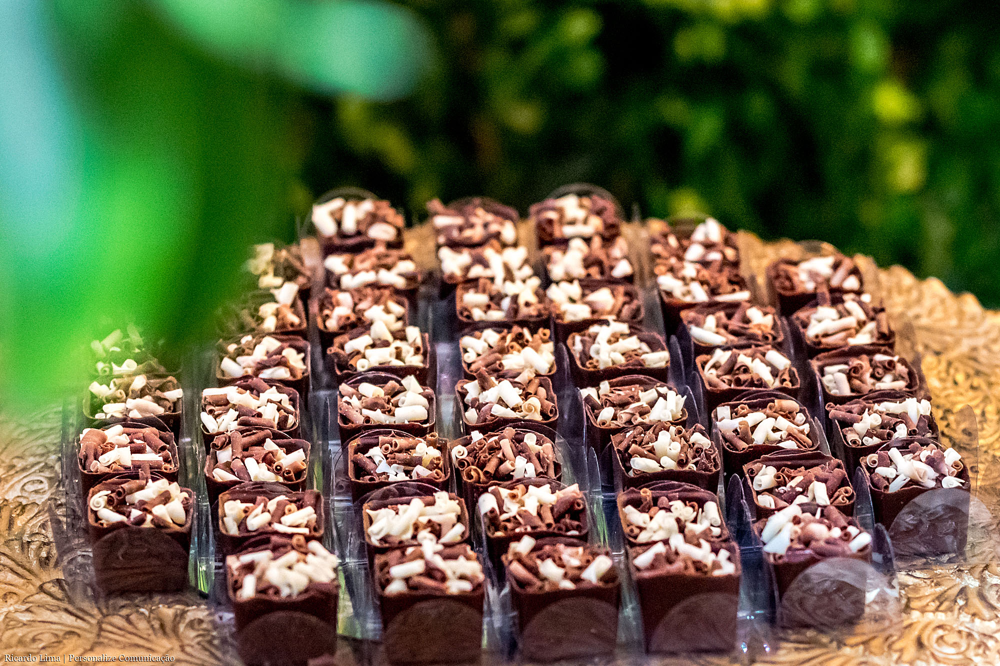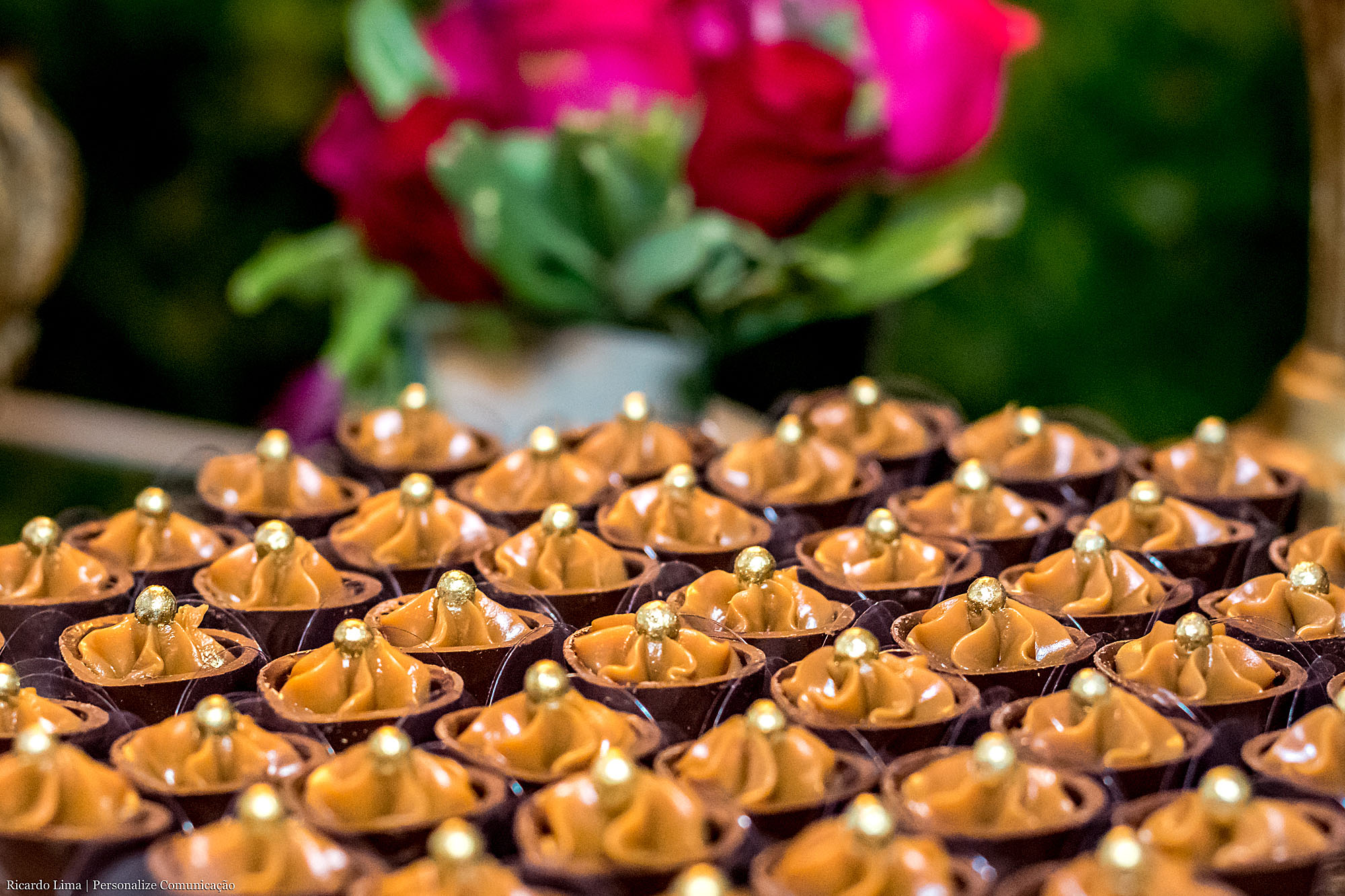 Os apetitosos docinhos foram feitos para encantar e esquecer-se da dieta. Os mais variados sabores foram distribuídos na bela mesa espelhada decorada com capricho para que cada tipo de doce tivesse o merecido destaque.