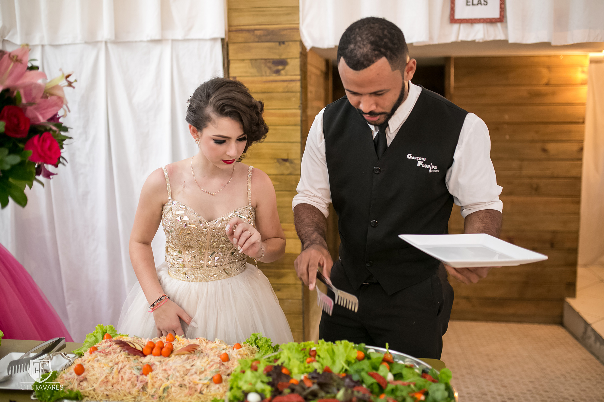 Crédito: Foto Tavares - Iasmin escolhe as opções no buffet da festa