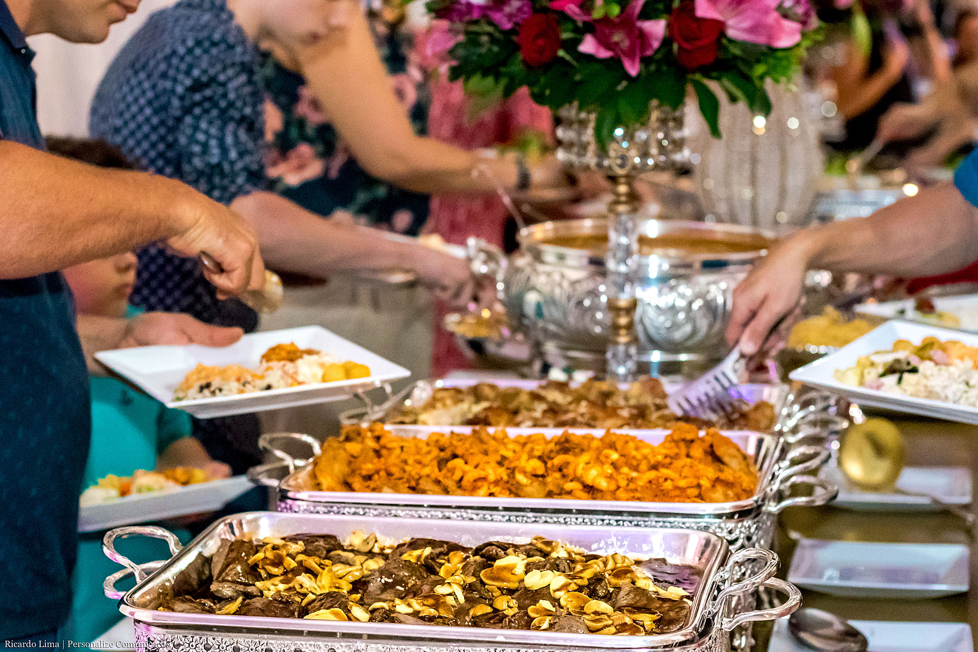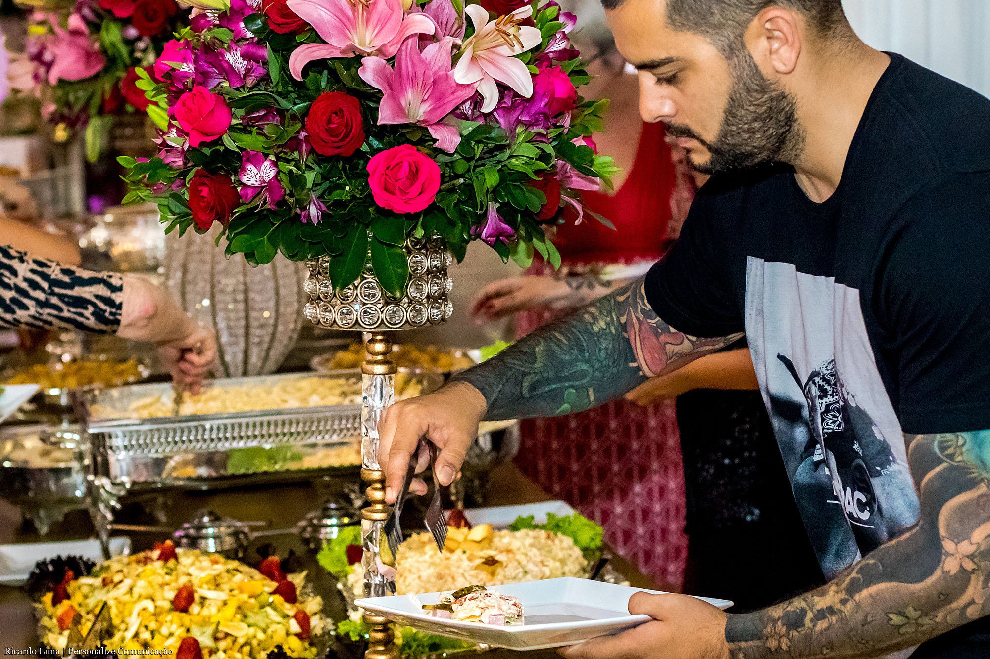 Crédito: Foto Tavares - Laíse escolhe as opções no buffet da festa