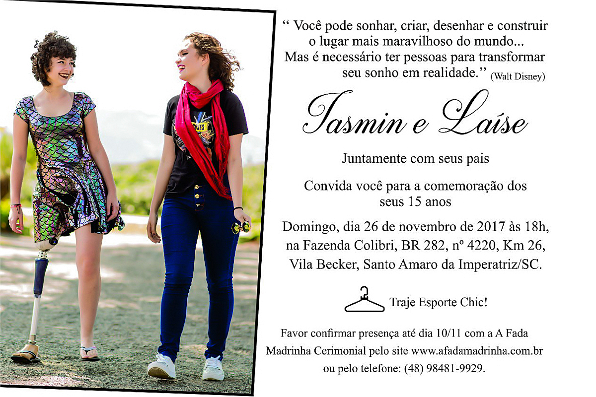 Aescolha do layout do convite é um dos momentos mais agradáveis e divertidos antes do grande dia. Iasmin e Laíse curtiram muito participar desta etapa.